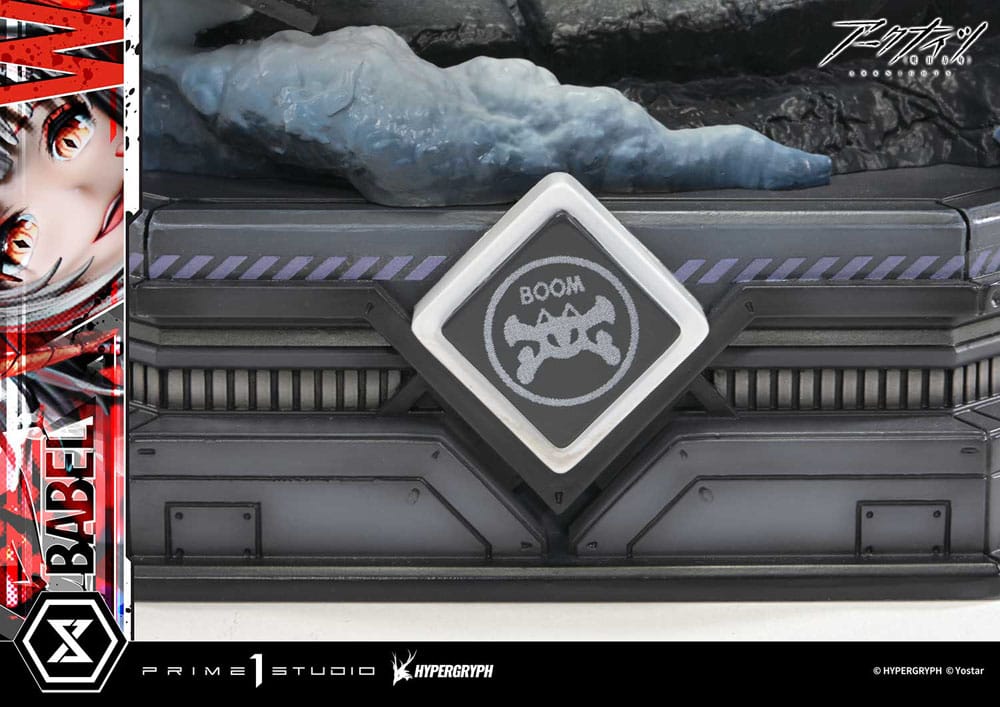 I suoi occhi brillano di scintille riflesse, le sue labbra si curvano in un sorriso giocoso e le sue dita sembrano pronte a innescare la prossima esplosione. Ogni dettaglio scolpito e dipinto trasmette fedelmente l'essenza dell'illustrazione originale. I volant svolazzanti della sua gonna e la trama della sua giacca di pelle sono resi con squisito realismo, catturando persino il bagliore delle fiamme circostanti. Dalle armi da fuoco che porta alla mascotte che penzola da esse al detonatore che ha in mano, ogni elemento è realizzato in modo intricato alla perfezione.