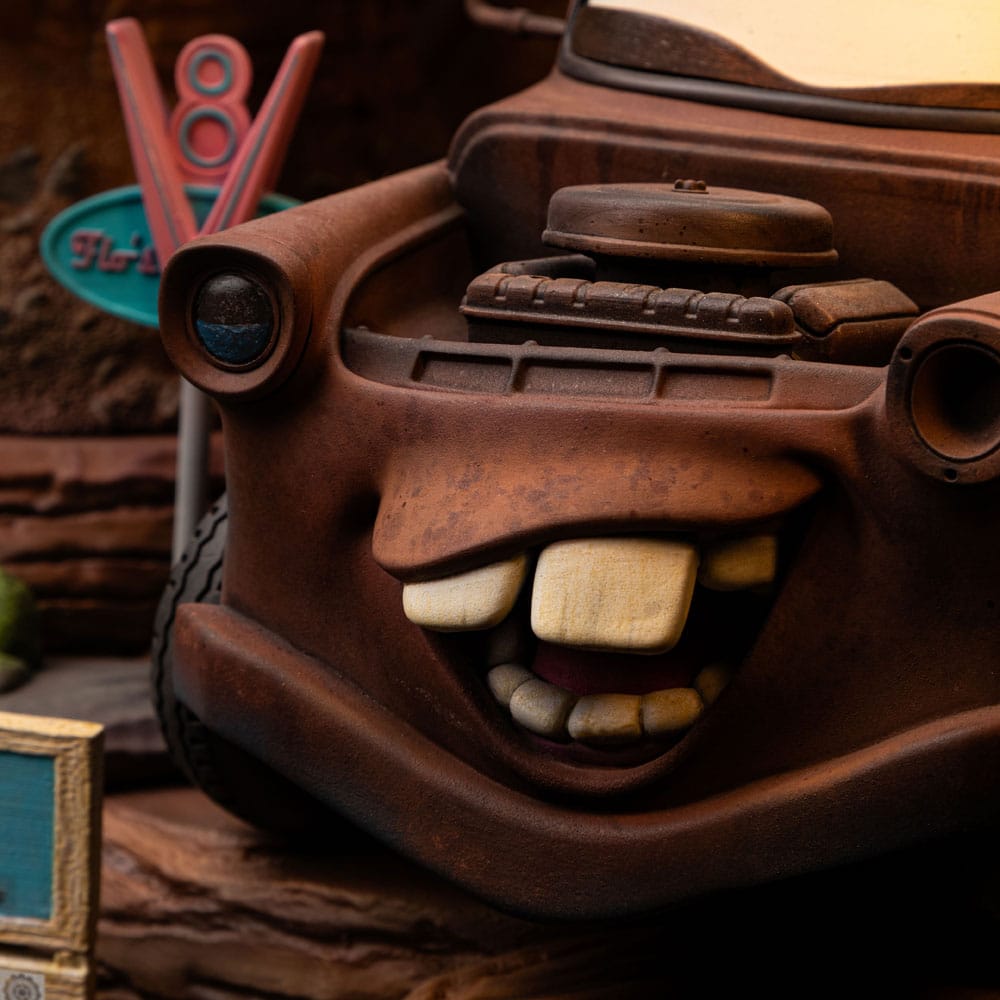 Who are Lightning McQueen & Tow Mater? The main character and central protagonist of Cars, considered one of Pixar's most popular and successful franchises, premiered in 2006. The series is set in a world entirely populated by anthropomorphic cars and other vehicles. Lightning McQueen is a professional race car driver who quickly rose to prominence in his local scene before debuting in the Piston Cup. He had a long and successful career, winning several championships before becoming Cruz Ramirez's trainer and boss on the Dinoco racing team. McQueen is typically portrayed as kind and passionate, having found an unlikely home in Radiator Springs, Arizona, where he lives with his best friend Tow Mater, his girlfriend Sally, and several other neighbors. Originally arrogant and self-centered, driven by ambitions to become a professional Piston Cup racer, he gets lost when his transporter takes him to Los Angeles and seeks help on the interstate when pursued by the sheriff of the small town of Radiator Springs. After causing some mayhem in an escape attempt, McQueen is sentenced to community service in the town. He ends up befriending the locals, especially the absent-minded tow truck, a 1955 Chevrolet tow truck. The film spawned two sequels, Cars 2 (2011) and Cars 3 (2017), as well as two spin-offs, games, comics, collectibles, and more. Exploring the Lightning McQueen & Tow Mater Deluxe Statue: On a pure rock platform, shaped by the hot winds of the Sonoran Desert, the fearless and daring Scarlet driver smiles at his charismatic but sometimes clumsy best friend, a friendly and rustic tow truck that has since been transformed into a patchwork of brown and orange, with original parts still visible. Taking first place on the podium, Iron Studios proudly presents the "Lightning McQueen & Tow Mater - Cars - Deluxe Art Scale 1/10" statue, featuring the main characters from the classic Disney Pixar animated film, with a diorama base. McQueen and his beloved Sally Carrera recall their races along nearby routes, passing through natural rock tunnels. Figure Details: Iron Studios' expanding collection of the most memorable characters from animated films that have become successful franchises, Lightning McQueen & Tow Mater are animated classics meticulously replicated by Iron Studios, based on the original references that capture every detail of the Piston Cup champion and his best friend. Special Features: The Lightning McQueen & Tow Mater Statue - Cars - Deluxe Art Scale 1/10 by Iron Studios will be produced in a limited edition. The diorama base features rich details inspired by the original references. Material and Finish: Just like all other statues produced by Iron Studios, the Lightning McQueen & Tow Mater Statue - Cars - Deluxe Art Scale 1/10 is crafted from high-quality materials such as Polystone and may contain resin, PVC, metal, and fabric parts. The hand-painted finish guarantees a unique and exclusive artistic touch that will satisfy any collector. Revealed in the Halloween theme within the Iron Studios Day Show and now available for pre-order, Disney Pixar’s most beloved race car is available in two versions, deluxe and regular, much to the delight of fans and collectors, expanding Iron Studios’ collection of the most memorable characters from the most memorable films that have become successful franchises.
