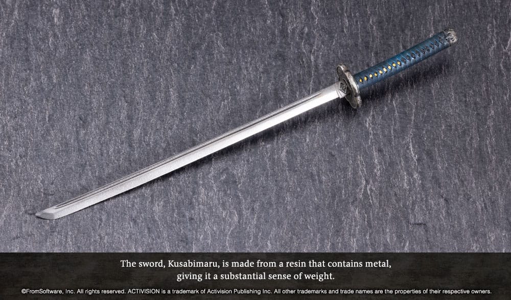 - The sword, Kusabimaru, is crafted from metal-infused resin for added weight and realism.