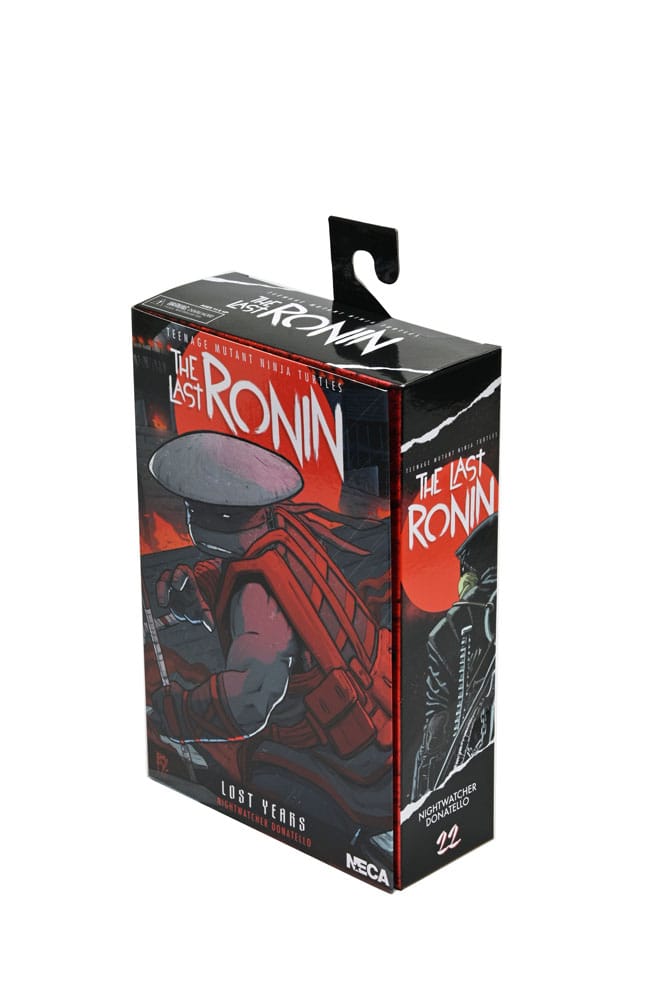 Dalla serie di fumetti Teenage Mutant Ninja Turtles, L'ultimo Ronin - Gli anni perduti! La storia della prima missione dell'Ultimo Ronin continua mentre vengono rivelati nuovi segreti del passato delle Tartarughe. Dopo che Raphael è caduto, le restanti Tartarughe si raggruppano e formano i Nightwatchers insieme ad April e Casey. Basata sul numero 3, questa figura di Donatello è in scala 7 pollici e presenta una verniciatura stilizzata per un look autentico da fumetto. Gli accessori includono due teste, mani extra e un bastone bo! Viene fornito in una confezione adatta ai collezionisti con illustrazioni originali dell'artista di The Last Ronin Ben Bishop.