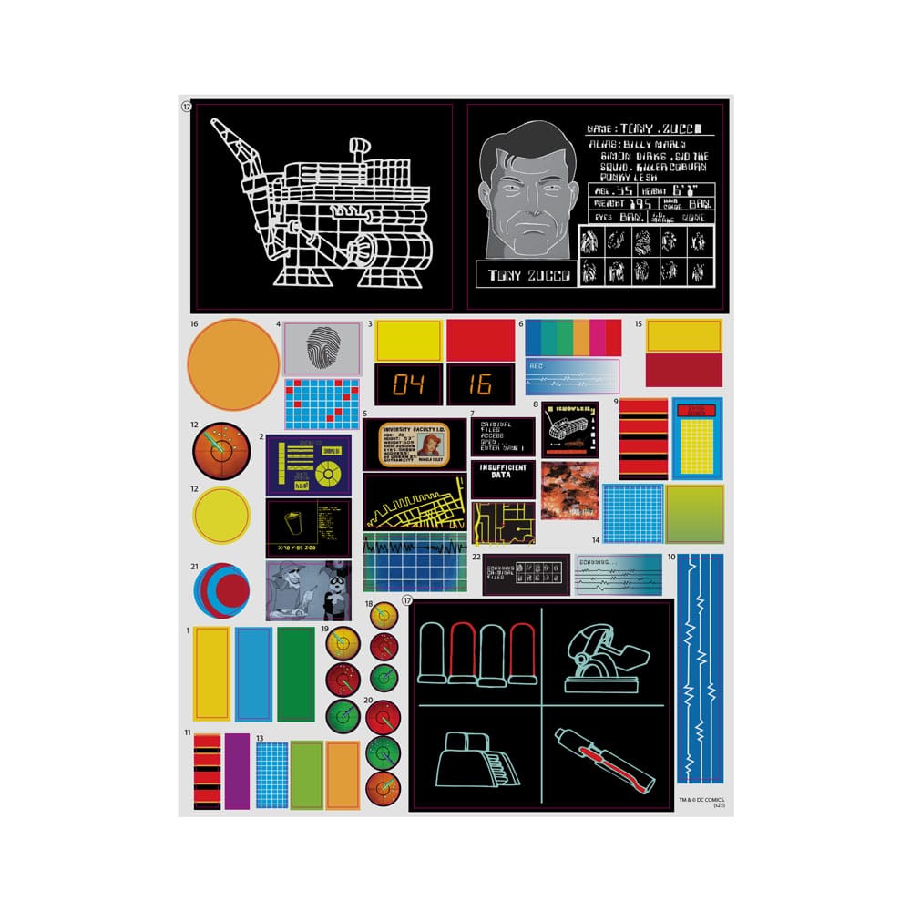 - Batcomputer illuminato che include una pagina intera di adesivi per personalizzare la visualizzazione della Batcaverna