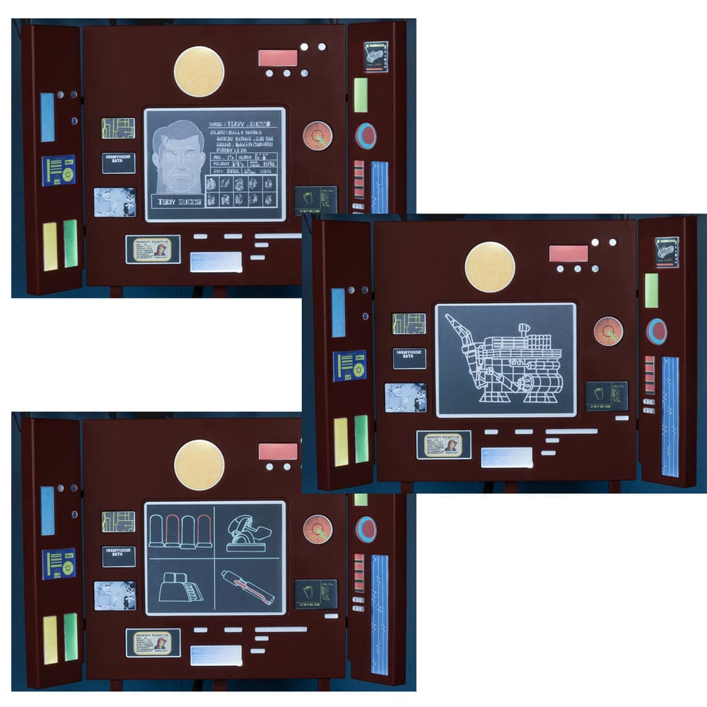 - Include la sedia di Batman, un tavolo, uno scanner e uno sfondo per il diarama della grotta