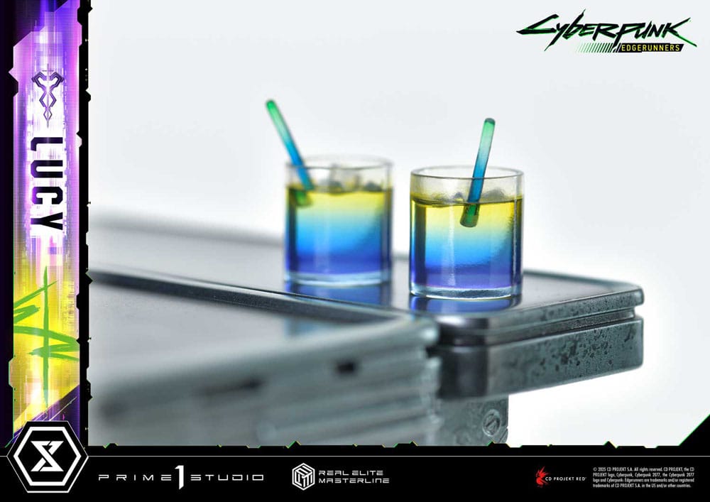 E se Lucy e il resto dell'equipaggio di David fossero ricreati nello stile CG di "Cyberpunk 2077"? Questo concetto visionario è stato portato alla vita come una statua in scala 1/4 di alta precisione. Lucy si appoggia con sicurezza contro il bancone, catturando fedelmente la sua presenza nell'anime mentre si fonde perfettamente con l'estetica realistica del gioco.
