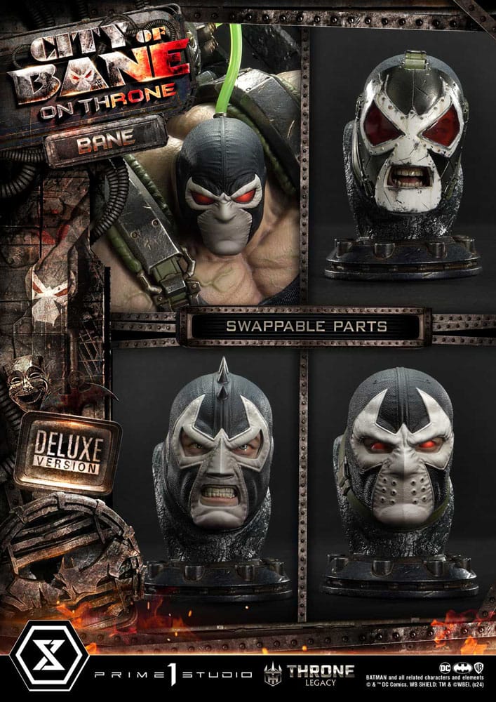 La versione Deluxe includerà tre parti di testa aggiuntive per una narrazione più ampia, tutte le varianti delle maschere facciali di Bane così come è stato ritratto nei fumetti e ogni testa verrà fornita con il suo supporto da mostrare.