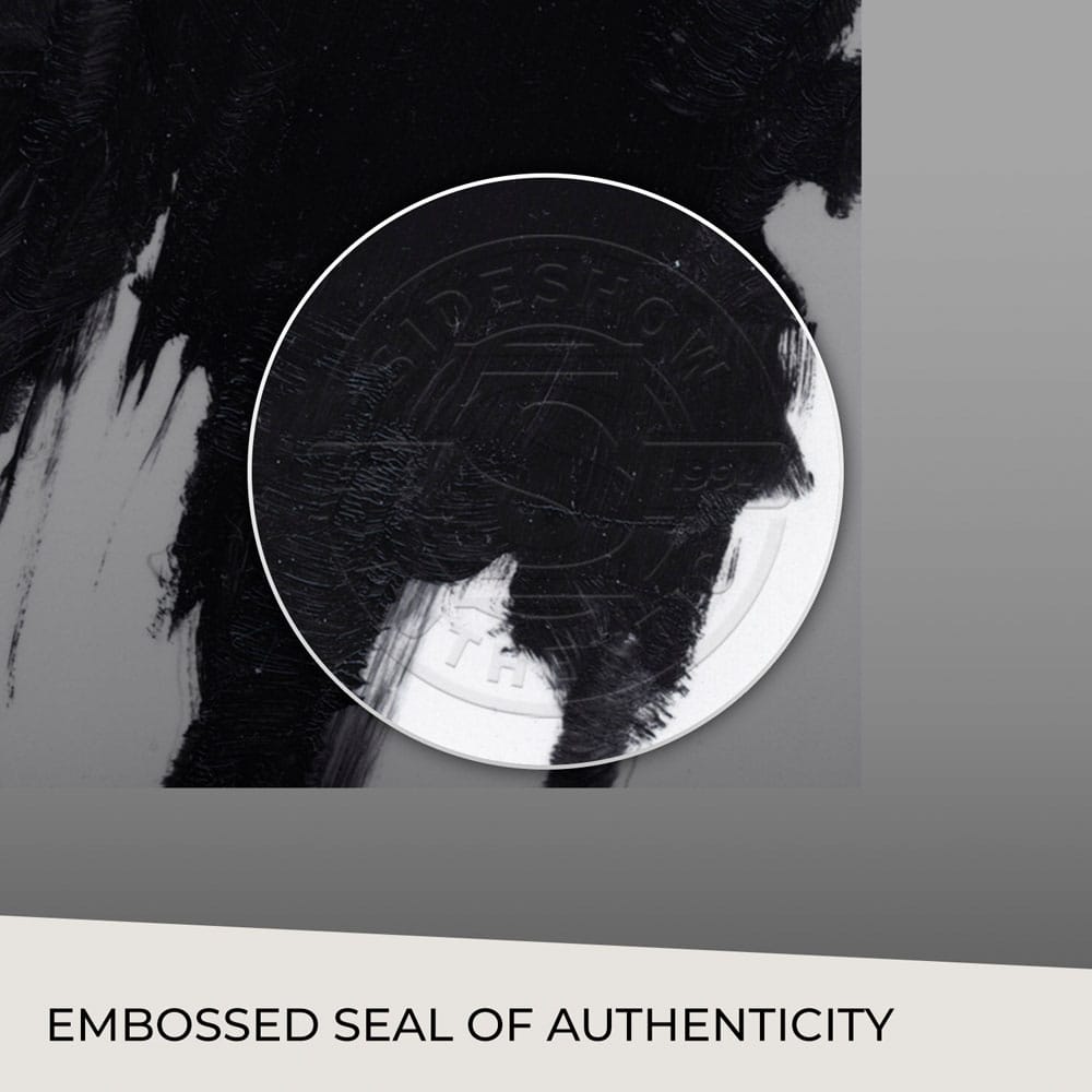 "Ci sono cose ben peggiori che attendono l'uomo della morte." Sideshow Art Prints presenta la stampa Dracula Fine Art, un oggetto da collezione Universal Monsters con licenza ufficiale dell'artista Chris Valentine. L'attore Bela Lugosi è sinonimo dell'immagine della cultura pop del soave conte vampiro sin dal suo ruolo nel film Dracula del 1931 della Universal Pictures. Questo ritratto monocromatico del transilvano in smoking cattura la sua presenza azzimata e pericolosa, con i capelli lisciati all'indietro, un sorriso ipnotizzante e occhi affamati. Le pennellate di San Valentino e la stratificazione di luci e ombre mettono in risalto il personaggio in un modo che richiama la tradizione del cinema in bianco e nero. Ogni stampa Fine Art di Dracula presenta un sigillo di autenticità Sideshow in rilievo ed è riprodotta fedelmente dal dipinto a olio originale dell'artista che è stato esposto e venduto durante la mostra della galleria Sideshow x CODA Universal Monsters. Disponibile senza cornice o in una presentazione incorniciata personalizzata, questa opera d'arte del film horror costituisce un'aggiunta straordinaria alla collezione d'arte di ogni fan. Abbina questa stampa agli altri ritratti Universal Monsters di Chris Valentine - Frankenstein, La sposa di Frankenstein e L'uomo lupo, ciascuno venduto separatamente - per la collezione definitiva di icone del grande schermo nella tua casa. Dai il benvenuto al conte e porta a casa oggi stesso la stampa artistica di Dracula di Chris Valentine. Dettagli stampa: - Licenza ufficiale di Frankenstein - Stampa giclée fine art 41 x 31 cm - 100% cotone, senza acidi, opaco Museo - Rag 260GSM - Inchiostri d'archivio Epson - Firma automatizzata dell'artista - Sigillo di autenticità in rilievo