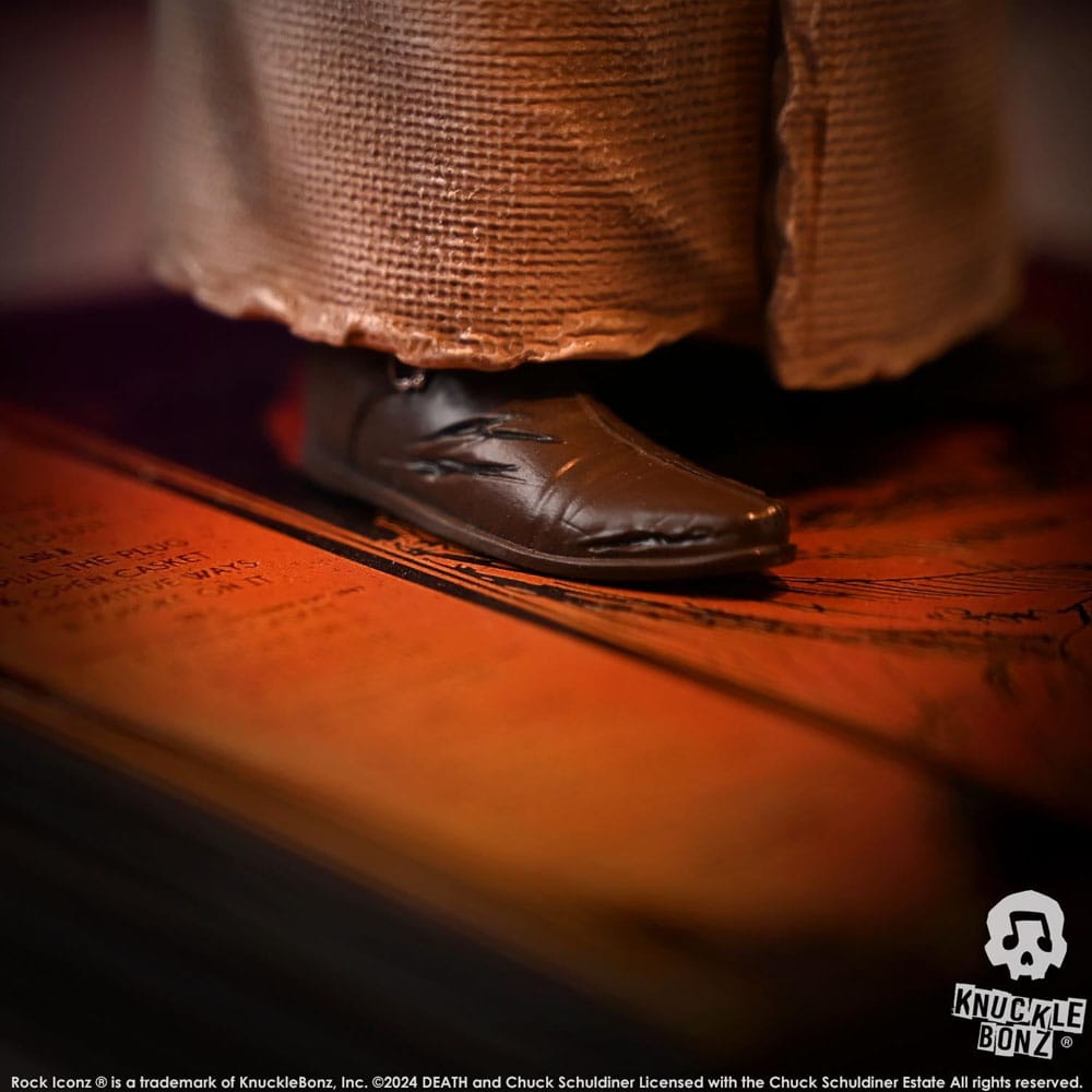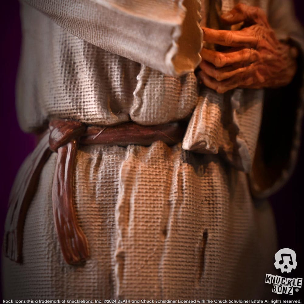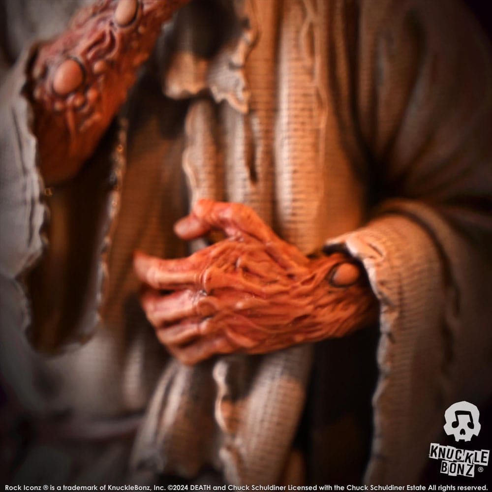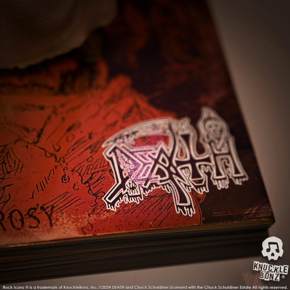 Questa è una statua in edizione limitata. Solo 1988 sarà scelto per Death Superfans in tutto il mondo. Ogni pezzo è realizzato a mano. Si tratta di un processo artistico in cui ogni statua è realizzata a mano, dipinta e numerata sulla base. Licenza ufficiale con la Chuck Schuldiner Estate.