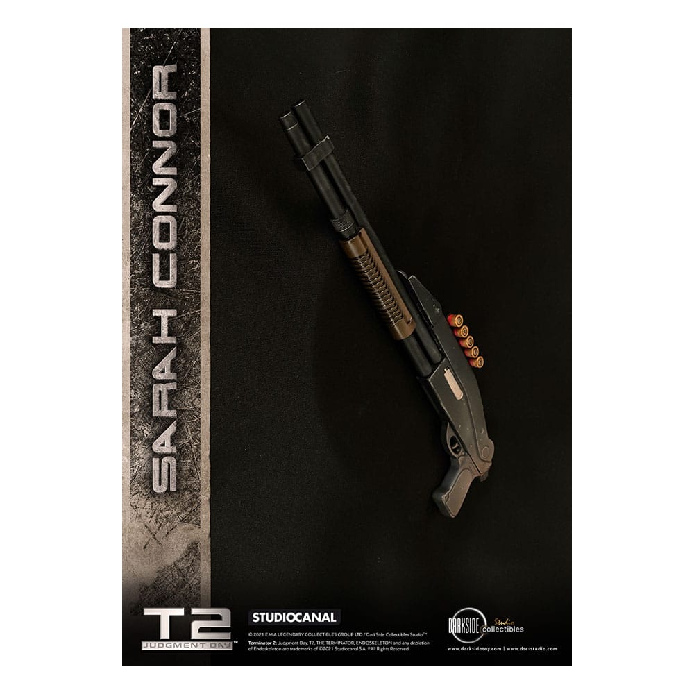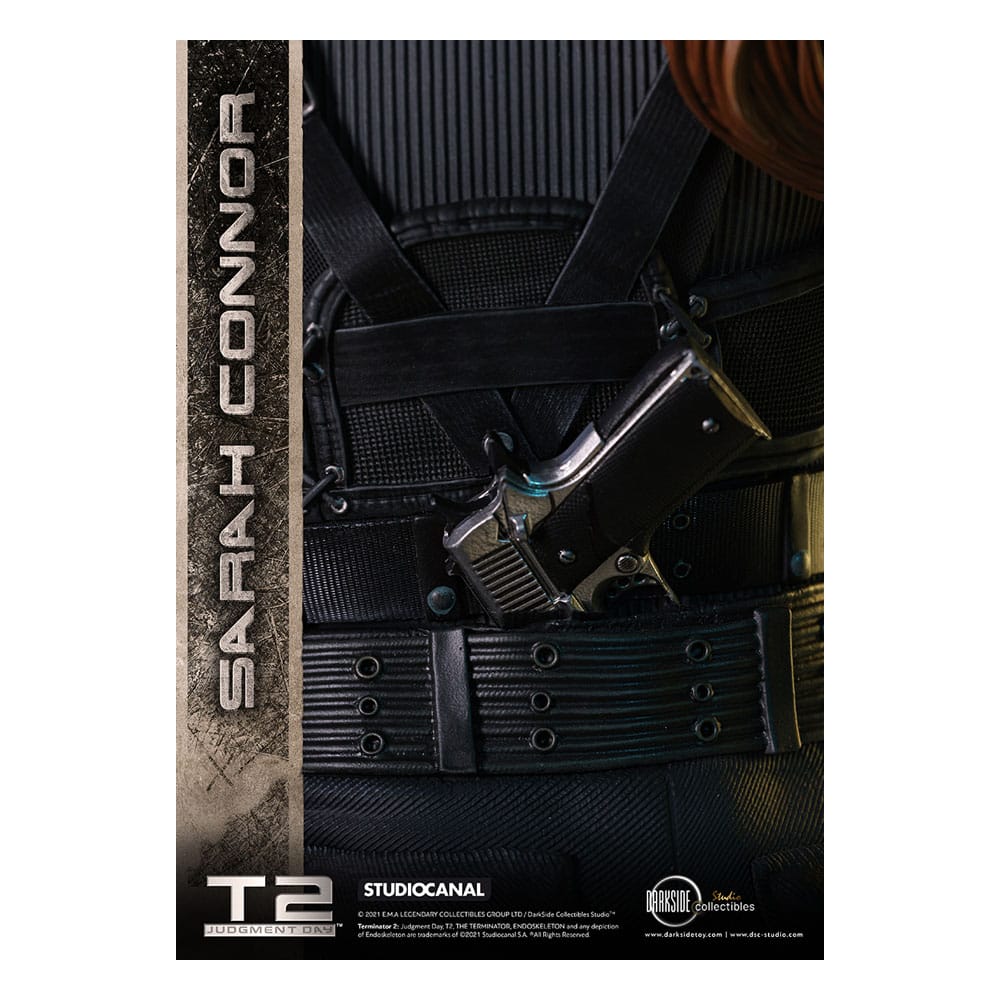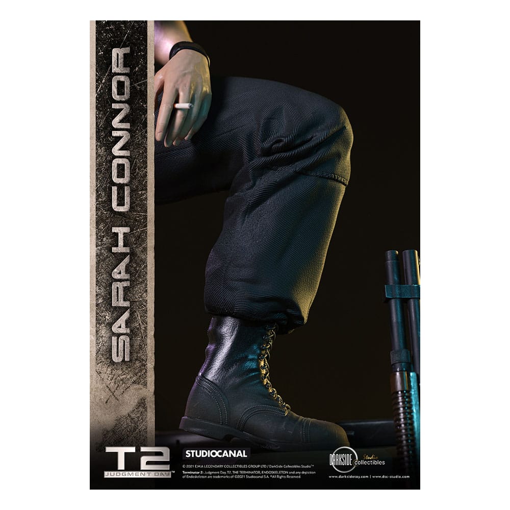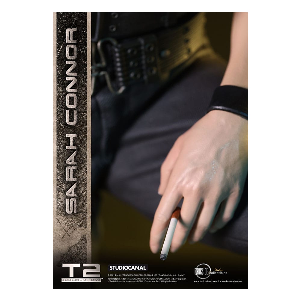 Sarah viene presentata pronta per il combattimento nel suo equipaggiamento tattico con in mano il fucile d'assalto utilizzato per l'assassinio di Miles Dyson. Il suo costume presenta accessori altamente dettagliati scolpiti nei minimi dettagli. Texture realistiche extra ordinarie completano la sua straordinaria presentazione. Una sigaretta rimovibile completa la scena dettagliata del film.