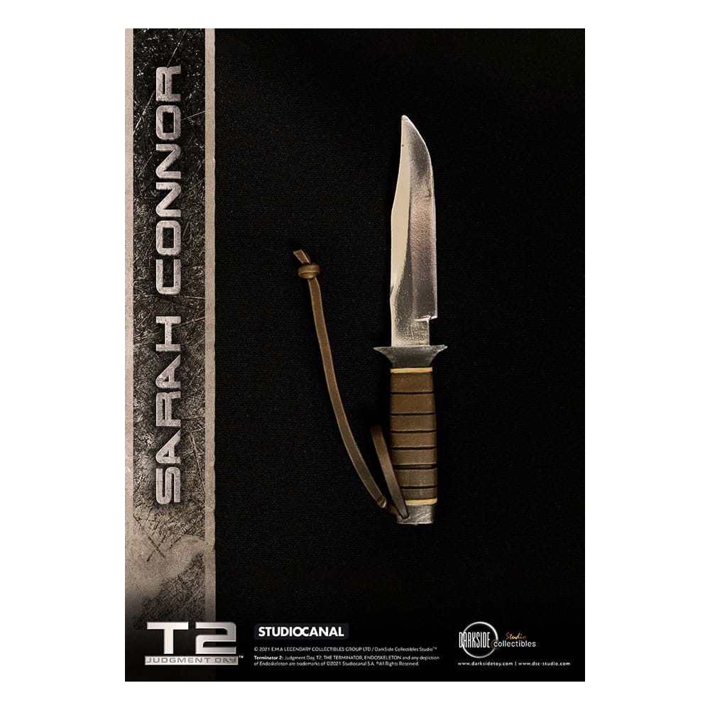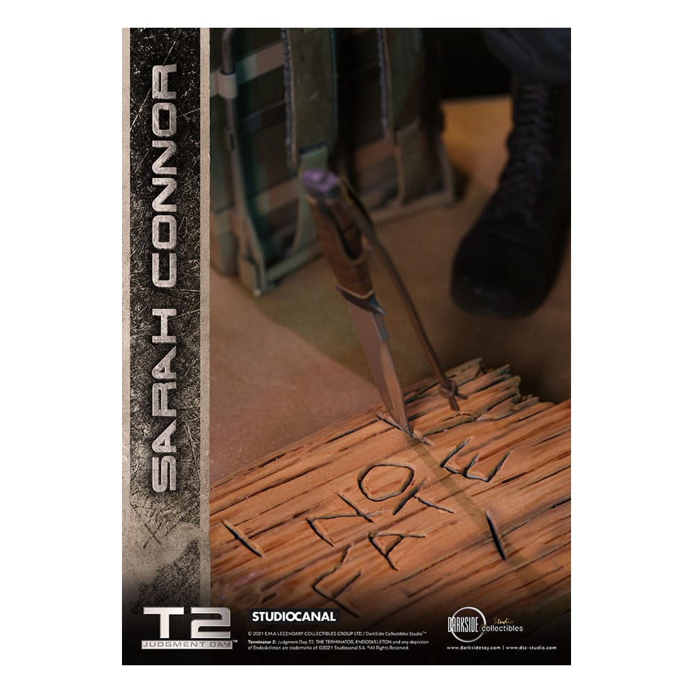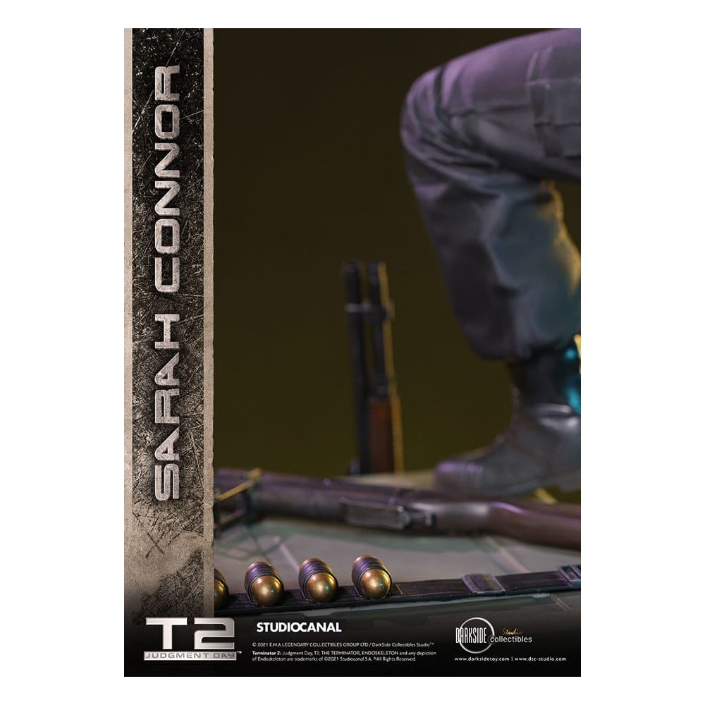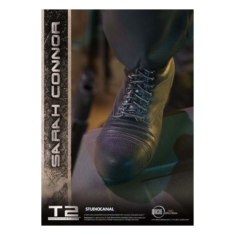 Sarah viene presentata pronta per il combattimento nel suo equipaggiamento tattico con in mano il fucile d'assalto utilizzato per l'assassinio di Miles Dyson. Il suo costume presenta accessori altamente dettagliati scolpiti nei minimi dettagli. Texture realistiche extra ordinarie completano la sua straordinaria presentazione. Una sigaretta rimovibile completa la scena dettagliata del film.