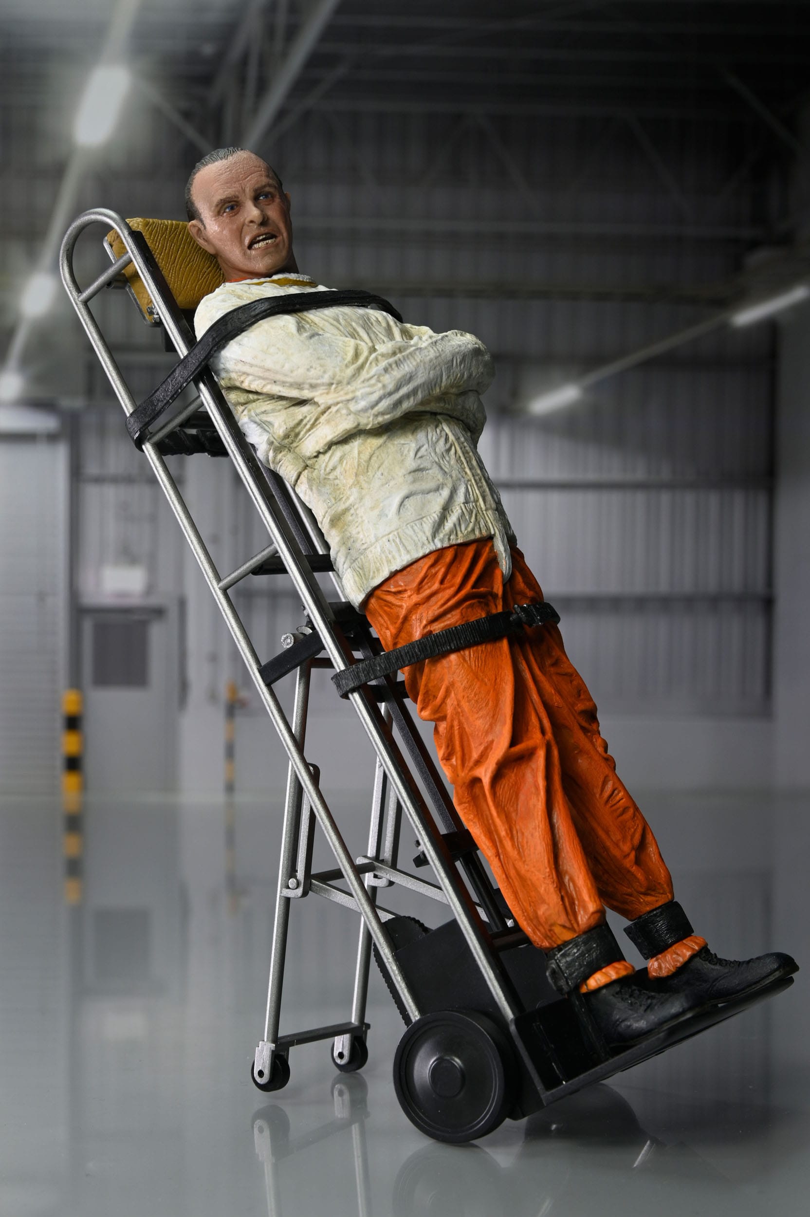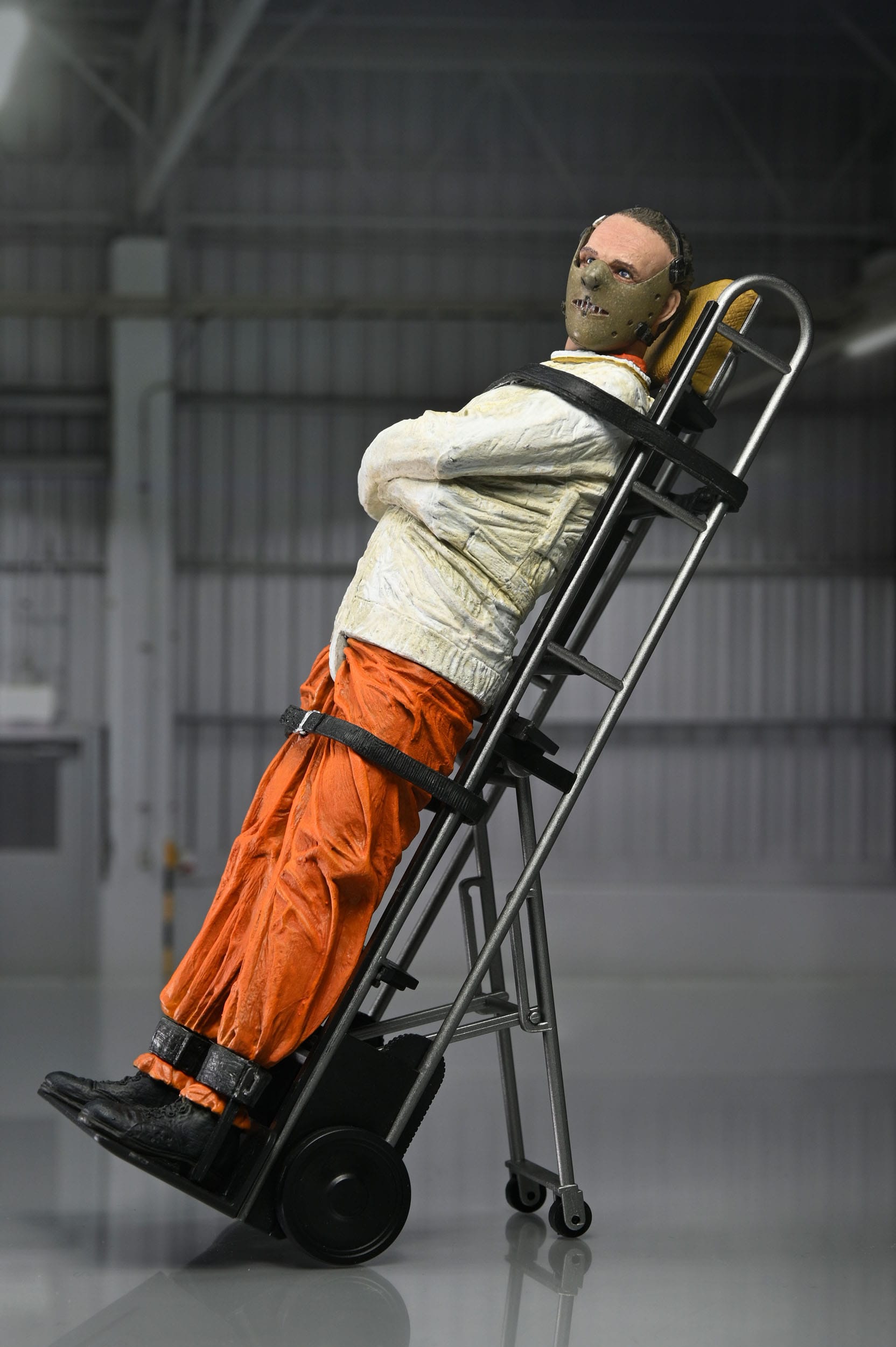 Aggiungi l'iconico Hannibal Lecter alla tua collezione horror! Interpretato dal premio Oscar Anthony Hopkins, il brillante e psicotico medico de Il silenzio degli innocenti indossa la sua uniforme carceraria arancione e la giacca di forza. Questa agghiacciante figura in scala da 7 pollici di NECA è articolata per la posa e viene fornita con teste intercambiabili, la sua maschera caratteristica e un accessorio dolly per il trasporto. Età 18+.