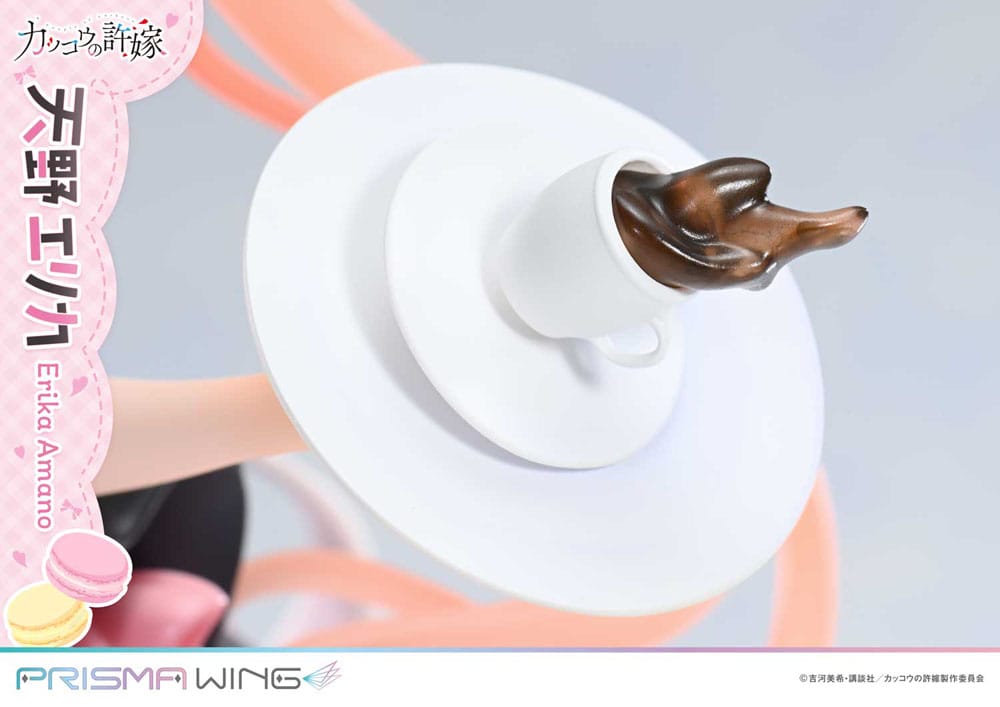 Dall'anime televisivo "A Couple of Cuckoos", Erika Amano appare in un affascinante completo da cameriera. Una delle eroine cresciute come una giovane donna raffinata prende vita come figura in un costume originale di PRISMA WING. Le sue leggere code gemelle, la posa dinamica e una base appositamente realizzata che è dolce quanto lei, catturano il suo fascino. Brillante, allegra e talvolta innocente, questa bellissima cameriera è pronta a condividere un posto nella tua stanza. Un'espressione radiosa fedele alla serie I suoi occhi brillano di colori vividi, la sua pelle brilla di un tono traslucido e la sua espressione radiosa cattura perfettamente il momento, proprio come nell'anime. Le code gemelle splendidamente graduate scorrono con un senso di leggerezza. Nero chic × Rosa dolce: un tocco di fascino maturo L'abito da cameriera disegnato da PRISMA WING presenta una combinazione di colori dolce e chic con un pizzico di raffinatezza. Ogni dettaglio, dalla tesa bianca ai nastri e ai volant, è stato realizzato con cura sia nella forma che nel colore. Macarons & Crema per un momento di dolcezza Ai piedi di Erika poggia una base appositamente realizzata e adornata con delicati dolci. Macaron leggermente cotti e una crema morbida e soffice creano una scena deliziosa, perfettamente abbinata al caffè che porta con sé.
