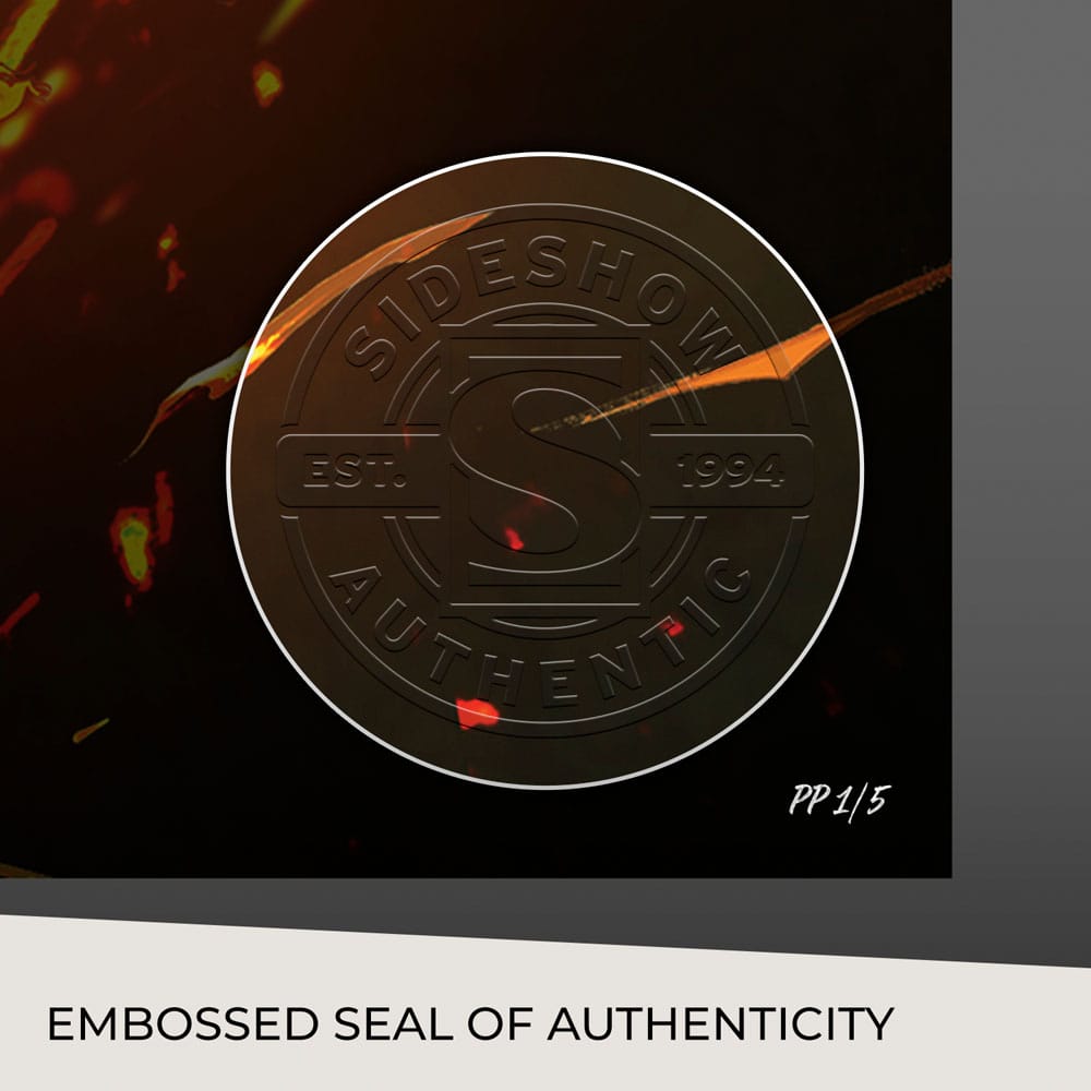 Creato originariamente come variante di copertina per Cosmic Ghost Rider #4 (2018), scritto da Donny Cates per Marvel Comics, questo oggetto da collezione di Ghost Rider è ora disponibile per i fan come stampa giclée senza cornice o in una presentazione incorniciata personalizzata. Ogni stampa artistica di Cosmic Ghost Rider presenta un sigillo di autenticità Sideshow in rilievo come parte dell'edizione limitata di 150 pezzi.