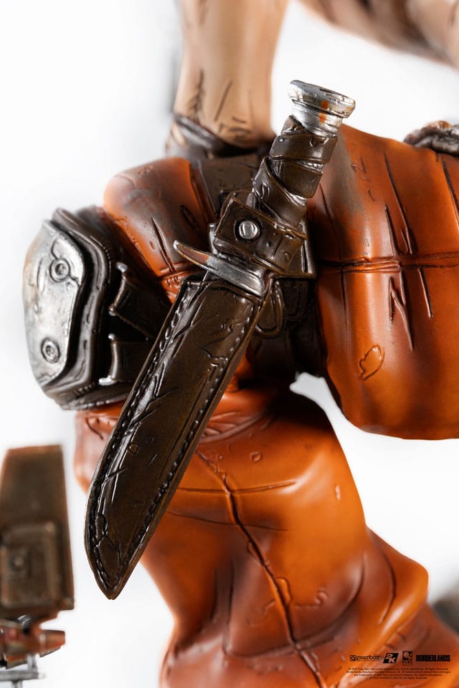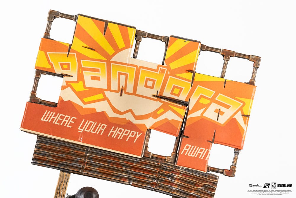 Benvenuti a Pandora, dove aspetta il tuo lieto fine! Porta in vita il caos e il caos di Borderlands con questo diorama in scala 1/6 dell'iconico Psycho Bandit che tormenta giocosamente il claptrap robot di fronte a una "panoramica" pandoran Vista!