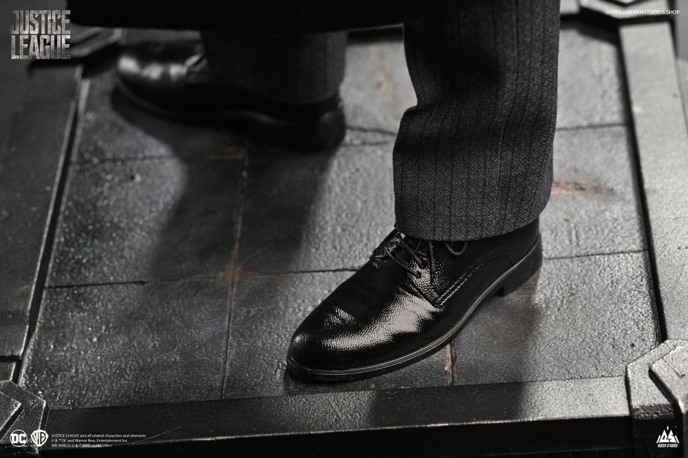 Presentazione della statua di Bruce Wayne ¼, realizzata meticolosamente per riflettere il ritratto di Bruce Wayne di Ben Affleck nella Justice League di Zack Snyder. Questa elegante statua cattura la miscela unica di raffinatezza e intensità di Bruce Wayne, con una mano in tasca e l'altra casualmente al suo fianco, mentre ritorna alle rovine fatiscenti di Wayne Manor insieme alla sua compagna di squadra Diana Prince e al suo maggiordomo Alfred Pennyworth. Con ritrovata determinazione, Bruce ha intenzione di ricostruirlo in una sala per qualcosa di più grande, iniziando con un grande tavolo rotondo, sei sedie e spazio per altro.