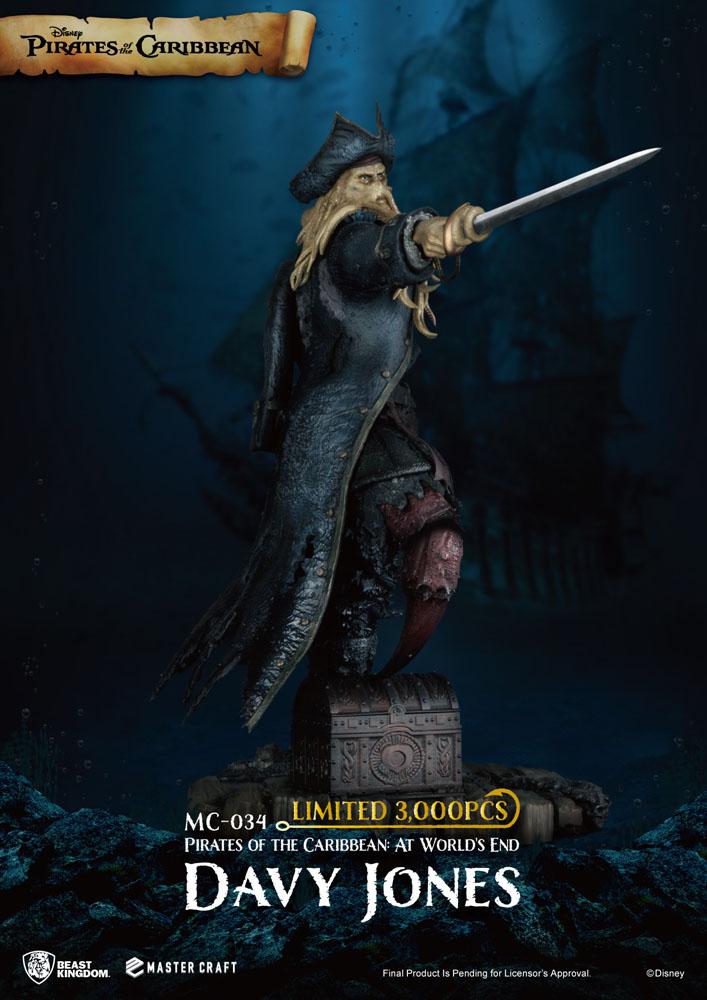 Il "marchio di esperienze di intrattenimento" di Beast Kingdom presenta con orgoglio le ultime novità in fatto di sculture dipinte a mano di fascia alta, con il Master Craft MC-034 Pirati dei Caraibi Davy Jones. Basandosi sulla sua apparizione nel film "Ai confini del mondo", Jones è raffigurato con ferocia, risolutezza e determinazione! Lo si vede puntare la sua fidata spada e proteggere il baule chiuso a chiave, che custodisce il suo cuore.