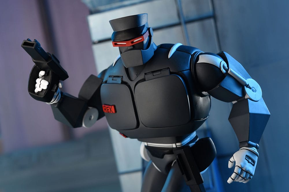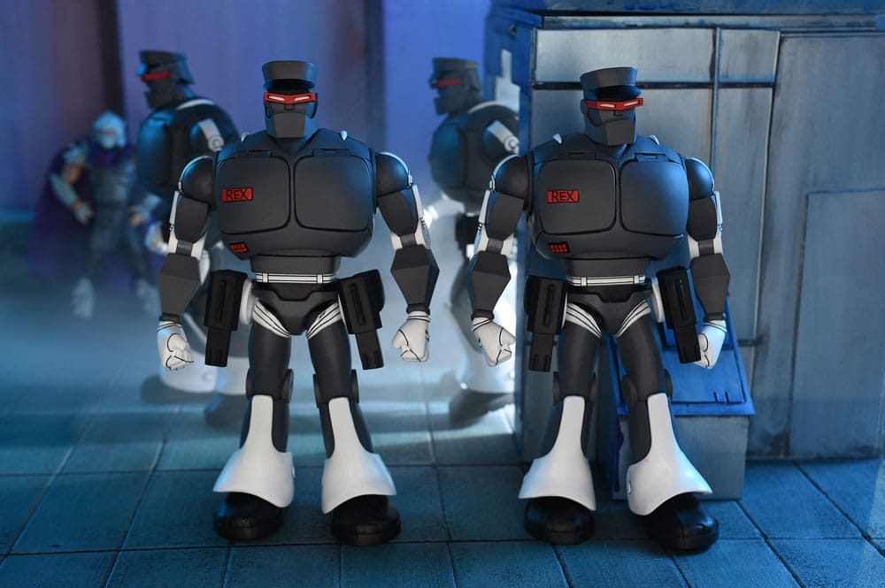 Basato sulla classica serie di cartoni animati delle Tartarughe Ninja degli anni '80! Il primo poliziotto robot conosciuto come "Robot Enforcement Experiment" ora ha un diabolico duplicato. L'esercito di robot Evil Rex-1 di Shredder è qui per prendere il controllo del tuo scaffale dei giocattoli e sconfiggere le tartarughe una volta per tutte! Questa action figure in scala da 7 pollici è programmata per il caos. Viene fornito in una confezione in stile tributo VHS adatta ai collezionisti.