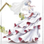 Il bianco abbagliante e puro del dipinto è davvero bello e il contrasto creato dalle pieghe interne rosse rende questo vestito ancora più affascinante.